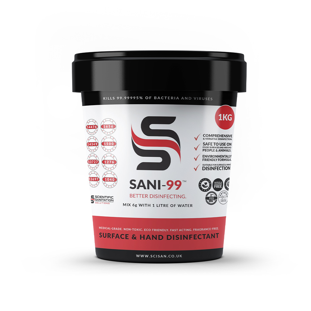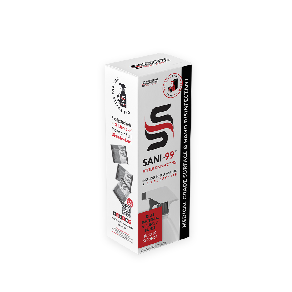 • SANI-99™ is a powerful broad-spectrum disinfectant, developed to target and kill pathogens achieving a minimum 6-log reduction of 99.99995%.